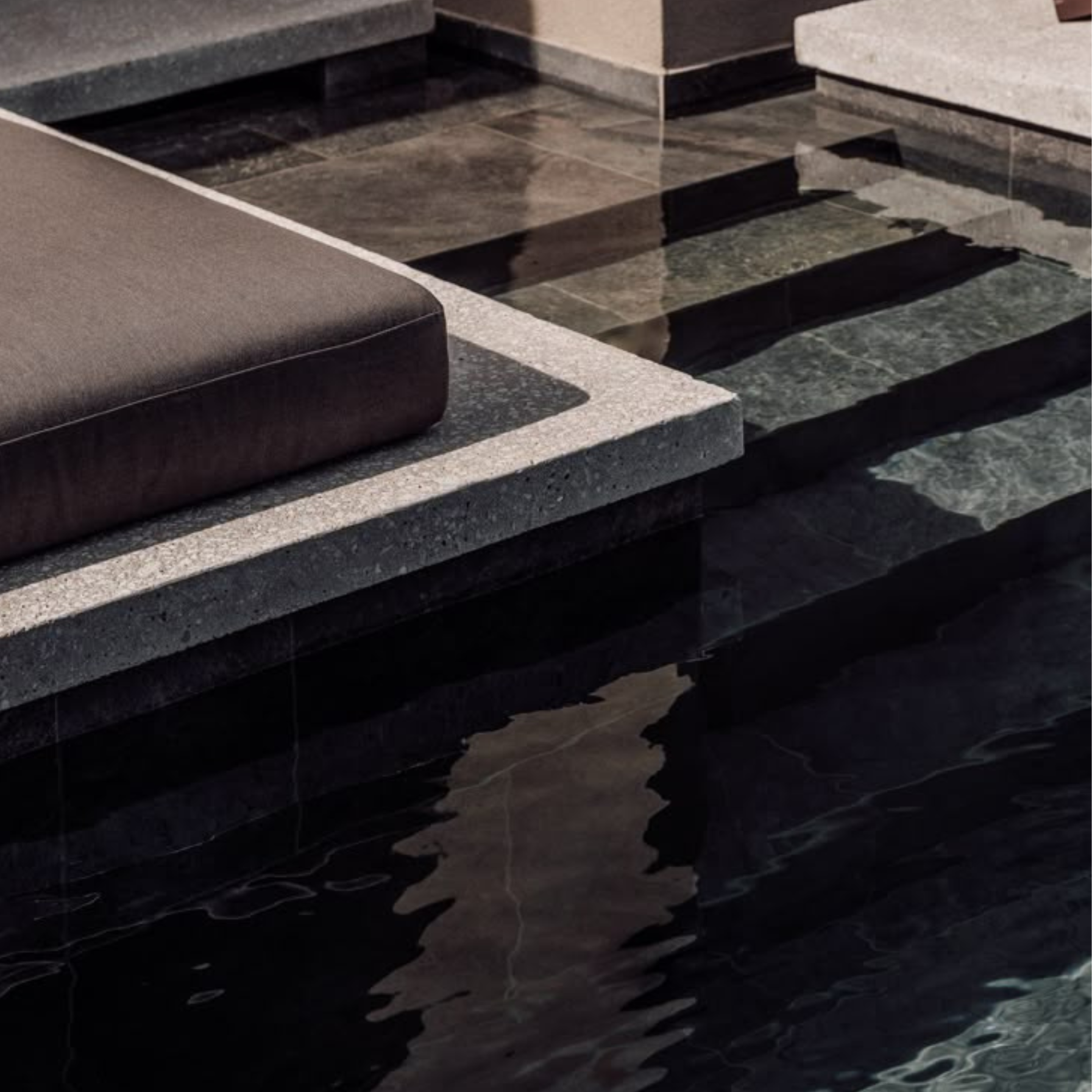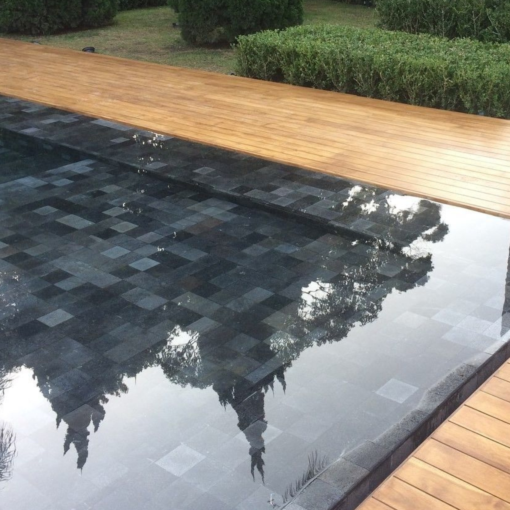 De origen volcánico y formada a altas temperaturas, la «La Piedra de Bali Negra» es ideal para revestir tanto interiores como exteriores de piscinas, spas, y espacios que busquen sifisticación y elegancia.